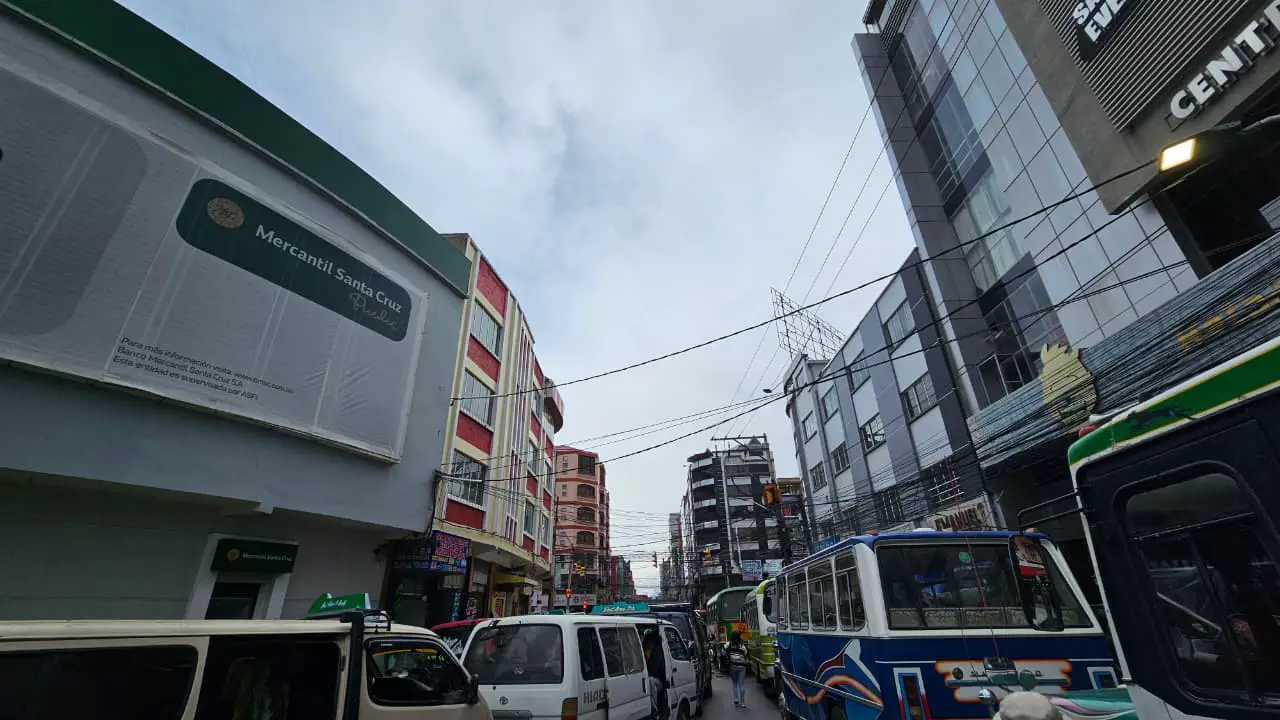 * Frente al Banco Mercantil Santa Cruz