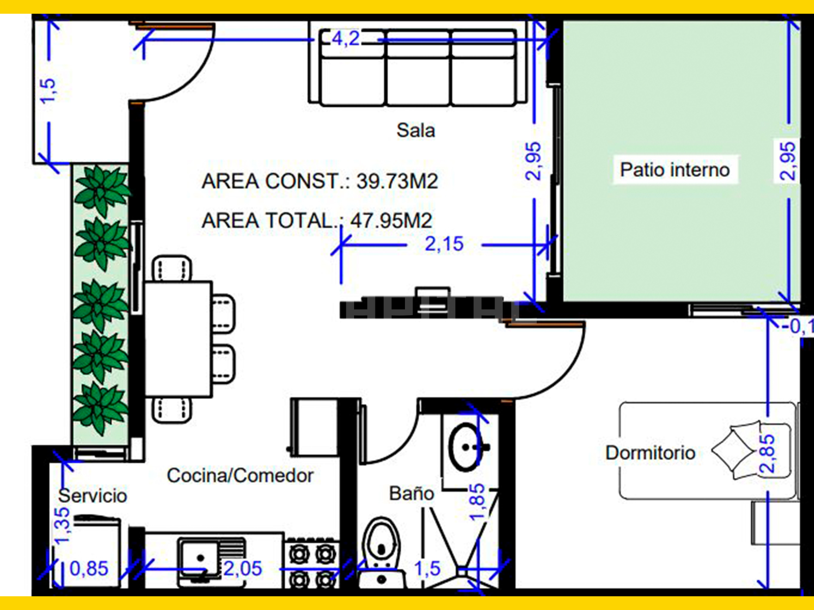 •47.95 m² de departamento