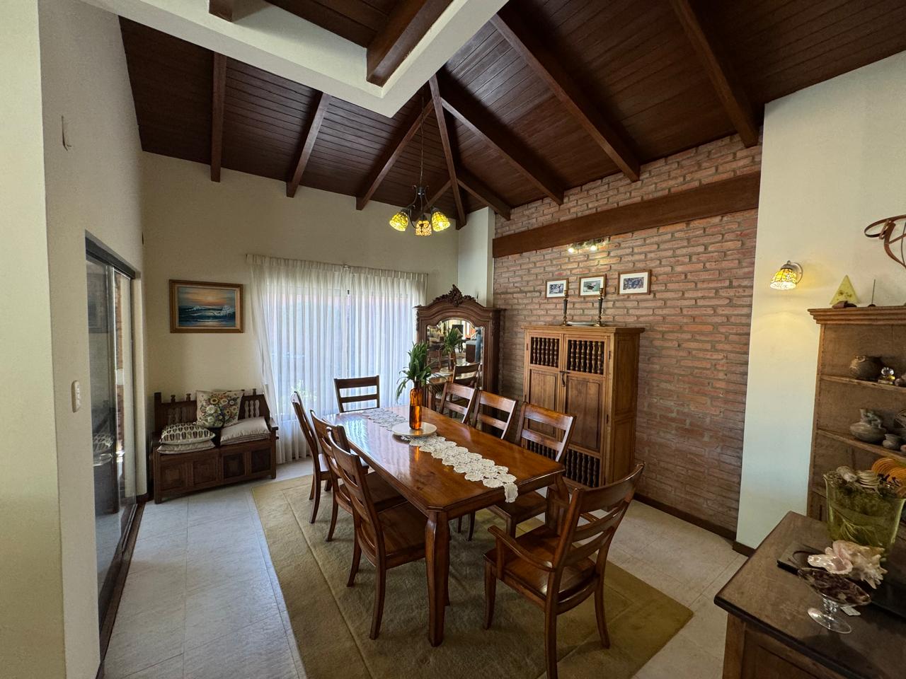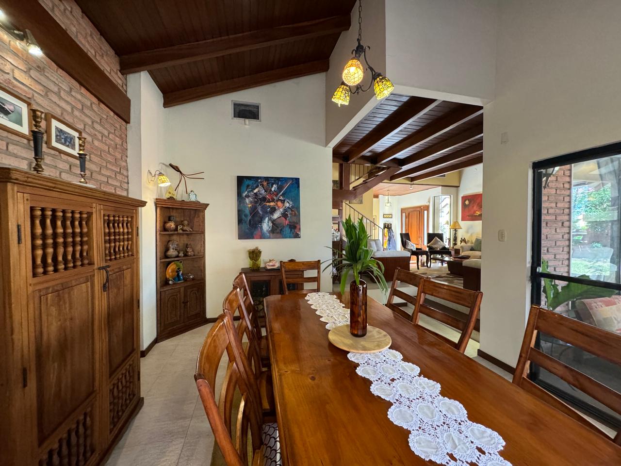 Amplio Comedor en desnivel con techo de madera tajibo
